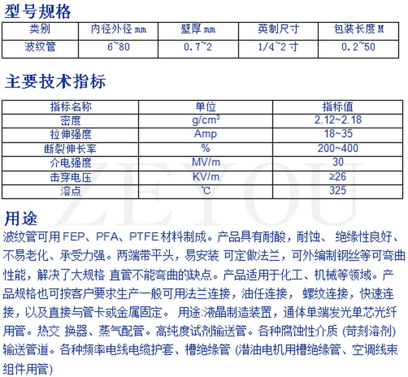 F46波纹管 液体输送软管