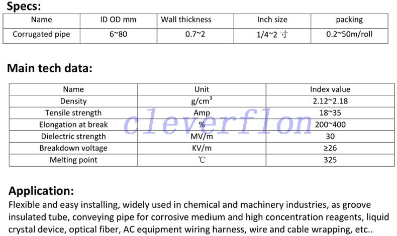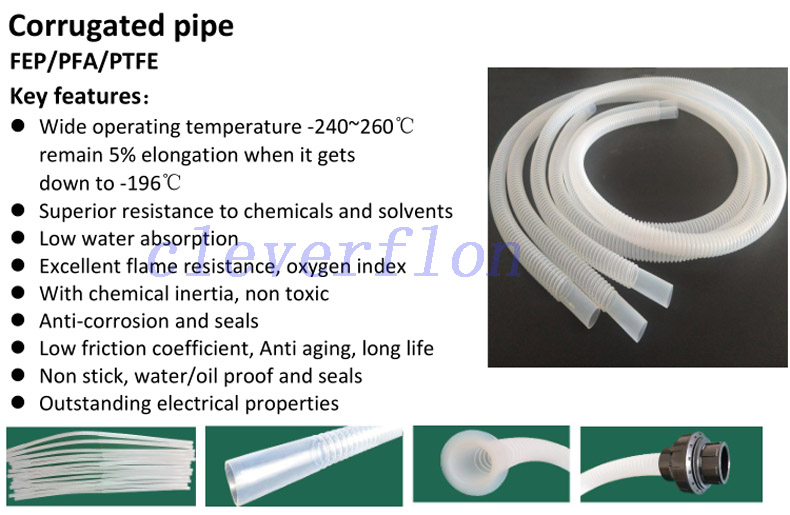 chemical resistant PTFE/FEP/PFA corrugated tube